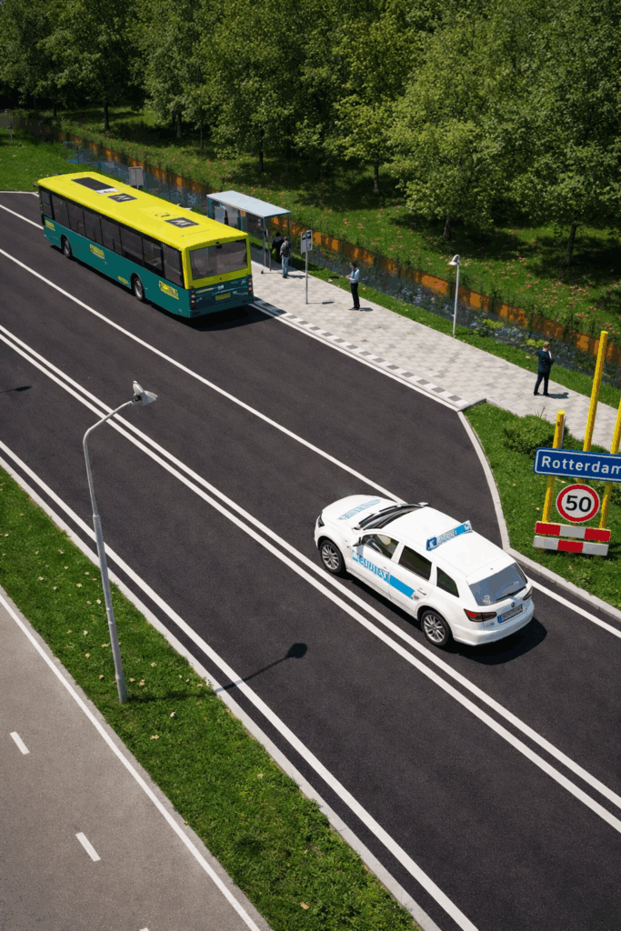 Zodra je buiten de bebouwde kom rijdt, verandert dat volledig. Daar gelden simpelweg de standaard verkeersregels en heeft een bus geen automatische voorrangspositie bij het invoegen op de rijbaan.