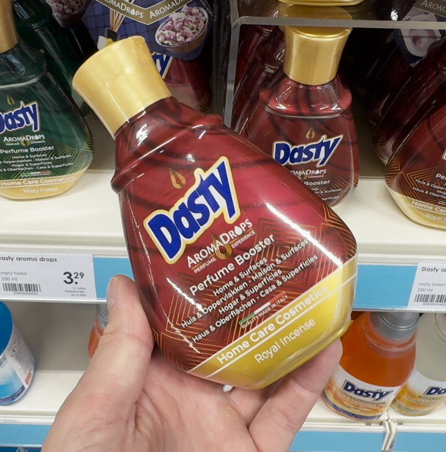 Dasty AromaDrops zijn sterk geconcentreerde geurdruppels op basis van parfum. Het product is ontworpen om een aangename geur te verspreiden en minder prettige luchtjes te maskeren. Het gaat dus niet om een schoonmaakmiddel, maar puur om geurverspreiding.