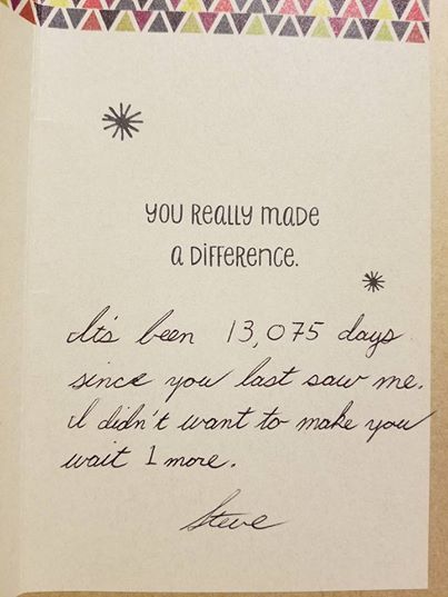 „Het is 13.075 dagen geleden dat je me voor het laatst zag. Ik wil je geen dag langer laten wachten.”